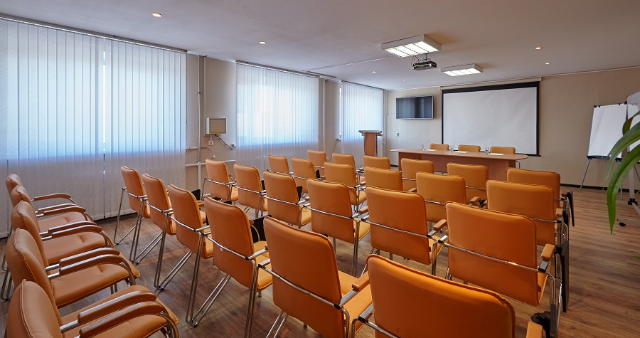 Имеется комфортный и просторный конференц-зал площадью 48 м2. Зал рассчитан на 30 человек, обставлен удобной мебелью, стулья с пюпитром, оснащен кондиционером, маркерной доской (флипчарт), видеопроектором, ЖК телевизором. Помещение идеально подходит для проведения пресс-конференций, презентаций, деловых семинаров и других мероприятий. Также возможна организация кофе-брейков, бизнес-ланчей, фуршетов.